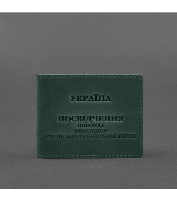 Описание Кожаная обложка для удостоверения инвалида в результате российско-украинской войны зеленый Crazy Horse