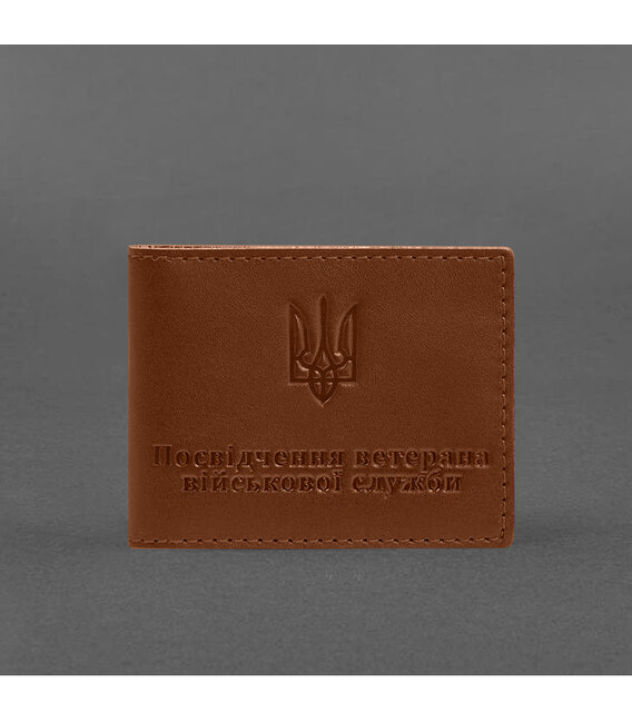 Кожаная обложка для удостоверения ветерана военной службы светло-коричневая
