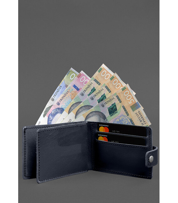 Кожаная обложка-портмоне для удостоверения участника боевых действий (УБД картонный документ) Темно-синяя
