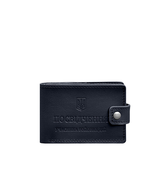 Описание Кожаная обложка-портмоне для удостоверения участника боевых действий (УБД картонный документ) Темно-синяя