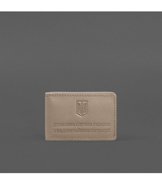 Кожаная обложка на удостоверение ДСНС с карманом светло-бежевая