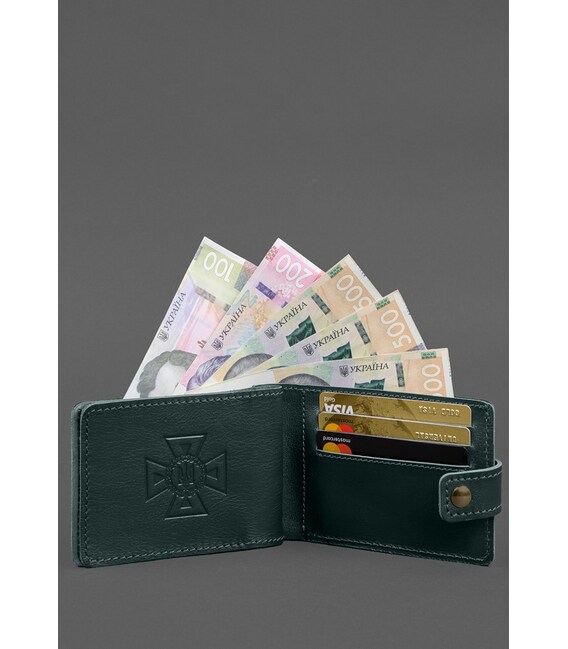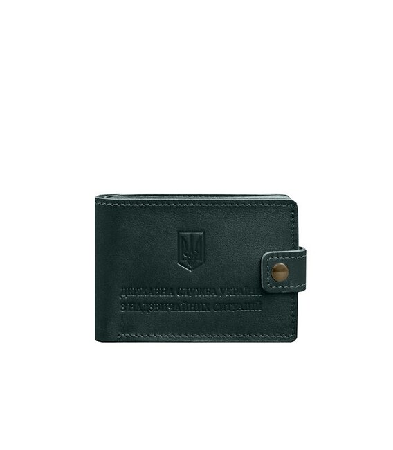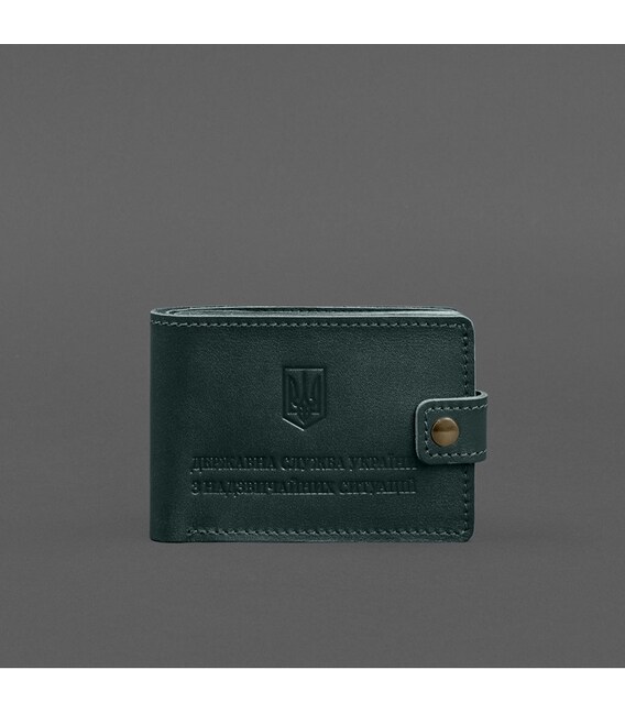 Кожаная обложка-портмоне на удостоверение ДСНС зеленая