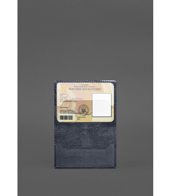 Кожаная обложка для пенсионного удостоверения темно-синяя