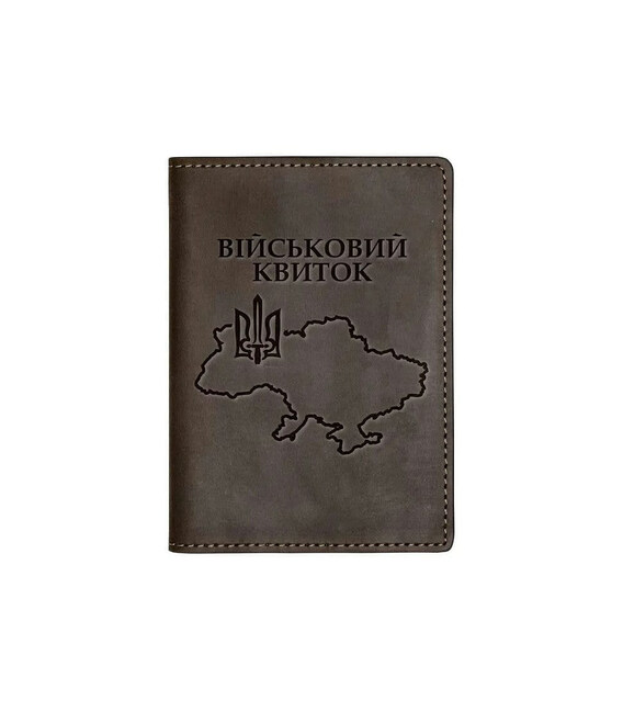 Шкіряна обкладинка для військового квитка Кордон Grande Pelle 257120UA, коричнева матова шкіра крейзі хорс, 14*10*1см