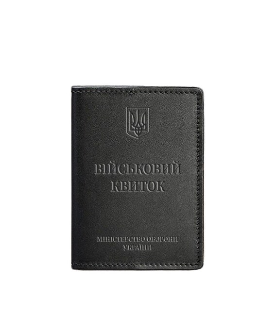 Кожаная обложка на военный билет от бренда БланкНот специально разработана для бережного хранения вашего документа. Сшита из высококачественной натуральной кожи краст. Кожа краст достаточно крепкая и долговечная.Тиснение на лицевой стороне обложки полностью дублирует оригинальный бланк документа. Вверху расположен герб Украины, посередине находится надпись «Військовий квиток» и в нижней части имеется тиснение "Міністерство оборони України"К заказу доступны два варианта обложки:С кожаным внутренним карманом. В таком случае военный билет удобно располагать в закрытом виде с одной стороны обложки, а во втором кармане можно носить дополнительные документы. Обложка с прозрачным внутренним карманом позволяет расположить военный билет в обложке в развернутом виде и демонстрировать документ, не доставая его с обложки.Этот аксессуар обеспечит сохранность вашего документа и пригодится всем военнослужащим.Почему стоит купить Черную кожаную обложку на военный билет (BN-OP-7-g) от BlankNote?Качественная натуральная кожа Четкое и хорошее тиснение Ручная работы Гарантия 3 годаНаши мастера могут изготовить обложку в любом другом цвете. Также изделие можно персонализировать.Обратите внимание на наши изделия с украинской символикой. Рекомендуем обложки для паспорта с гербом Украины.Гарантия на обложку - 3 года с момента покупки.Фурнитура и комплектация может быть изменена производителем