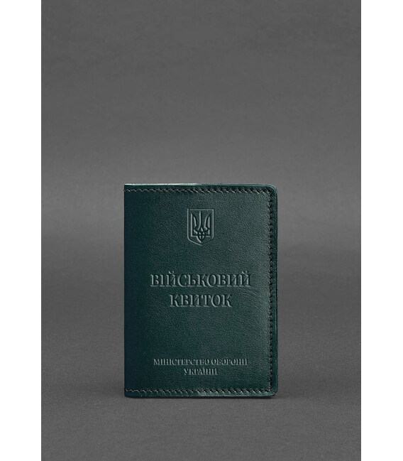 Кожаная обложка на военный билет от бренда БланкНот специально разработана для бережного хранения вашего документа. Сшита из высококачественной натуральной кожи краст. Кожа краст достаточно крепкая и долговечная.Тиснение на лицевой стороне обложки полностью дублирует оригинальный бланк документа. Вверху расположен герб Украины, посередине находится надпись «Військовий квиток» и в нижней части имеется тиснение "Міністерство оборони України"К заказу доступно два варианта обложки:С кожаным внутренним карманом. В таком случае военный билет удобно располагать в закрытом виде с одной стороны обложки, а во втором кармане можно носить дополнительные документы. Обложка с прозрачным внутренним карманом позволяет расположить военный билет в обложке в развернутом виде и демонстрировать документ, не доставая его с обложки. Этот аксессуар обеспечит сохранность вашего документа и пригодится всем военнослужащим.Почему стоит купить Зеленую кожаную обложку на военный билет (BN-OP-7-malachite) от BlankNote?Качественная натуральная кожа Четкое и хорошее тиснение Ручная работы Гарантия 3 годаНаши мастера могут изготовить обложку в любом другом цвете. Также изделие можно персонализировать.Обратите внимание на наши изделия с украинской символикой. Рекомендуем обложки для паспорта с гербом Украины.Гарантия на обложку - 3 года с момента покупки.Фурнитура и комплектация может быть изменена производителем
