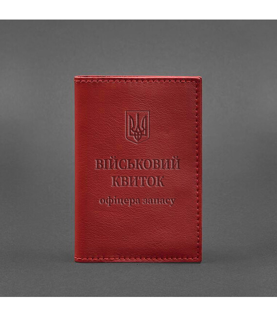 Кожаная обложка на военный билет от бренда БланкНот специально разработана для бережного хранения вашего документа. Сшита из высококачественной натуральной кожи краст. Кожа краст достаточно крепкая и долговечная.Тиснение на лицевой стороне обложки полностью дублирует оригинальный бланк документа. Вверху расположен герб Украины, посередине находится надпись «Військовий квиток офіцера запасу»К заказу доступны два варианта обложки:С двумя прозрачными карманами (ПВХ). Обложка с 1 прозрачным и с 1 кожаным карманом. Также вы можете выбрать нужный размер обложки.Этот аксессуар обеспечит сохранность вашего документа и пригодится всем военнослужащим.Почему стоит купить Красную кожаную обложку на военный билет (BN-OP-8-red) от BlankNote?Качественная натуральная кожа Четкое и хорошее тиснение Ручная работы Гарантия 3 годаНаши мастера могут изготовить обложку в любом другом цвете. Также изделие можно персонализировать.Обратите внимание на наши изделия с украинской символикой. Рекомендуем обложки для паспорта с гербом Украины.Гарантия на обложку - 3 года с момента покупки.Фурнитура и комплектация может быть изменена производителем