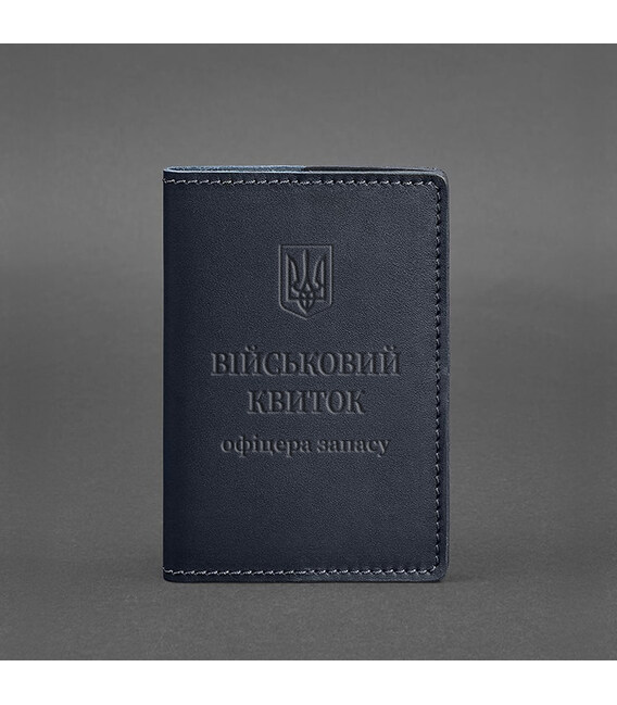 Кожаная обложка для военного билета офицера запаса 8.0 темно-синяя