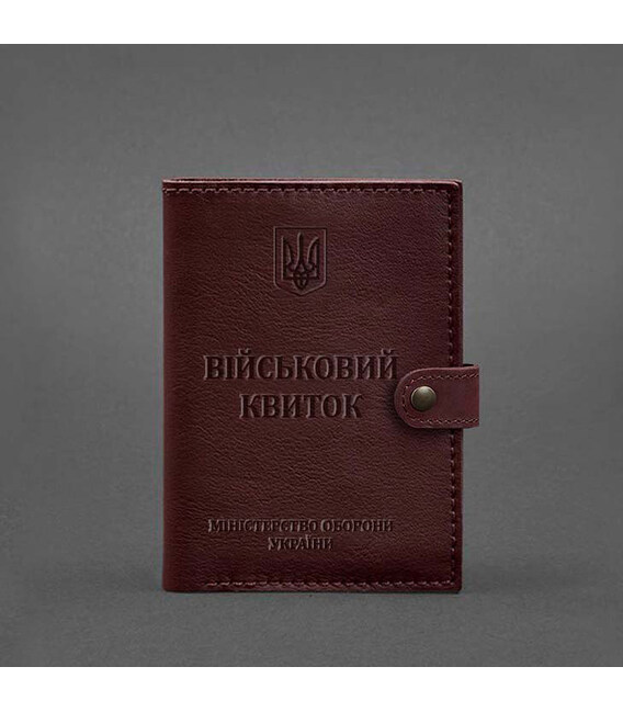 Кожаная обложка-портмоне для военного билета 15.0 бордовая