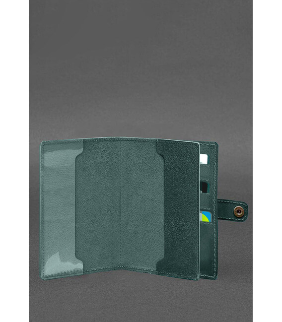 Кожаная обложка-портмоне для военного билета 15.0 зеленая