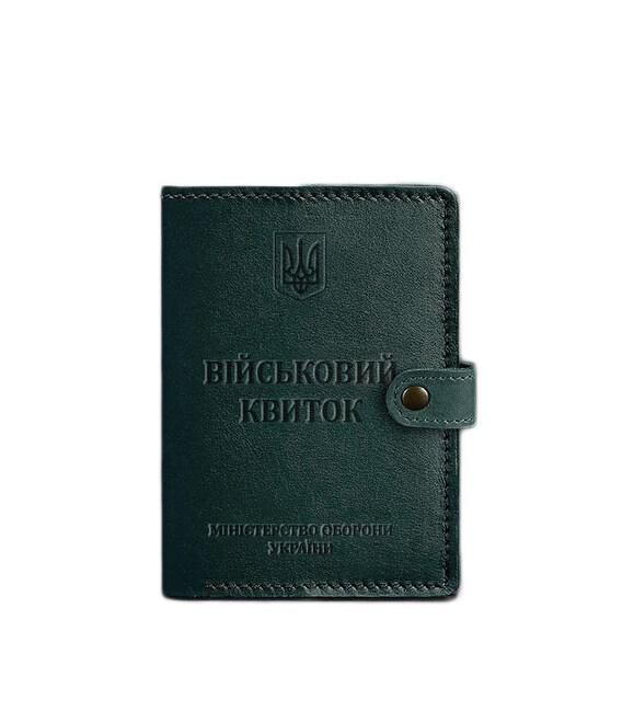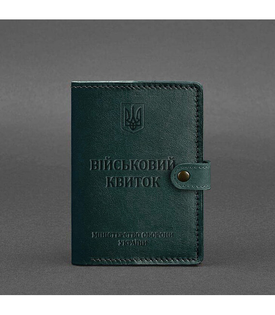 Кожаная обложка-портмоне для военного билета от бренда БланкНот специально разработана для бережного хранения вашего документа. Сшита из высококачественной натуральной кожи краст. Кожа краст достаточно крепкая и долговечная.Тиснение на лицевой стороне обложки полностью дублирует оригинальный бланк документа. Вверху расположен герб Украины, посередине находится надпись "Військовий квиток" и в нижней части имеется тиснение "Міністерство оборони України"Внутри имеется 1 отделение для купюр, 5 слотов для пластиковых карт, отделение с прозрачным карманом и отделение для документа. Закрывается портмоне-обложка хлястиком с кнопкой. Почему стоит купить Зеленую кожаную обложку-портмоне для военного билета (BN-OP-15-malachite) от BlankNote?Качественная натуральная кожа Четкое и хорошее тиснение Ручная работы Гарантия 3 годаНаши мастера могут изготовить обложку-портмонев любом другом цвете. Также изделие можно персонализировать.Обратите внимание на наши изделия с украинской символикой. Рекомендуем обложки для паспорта с гербом Украины.Гарантия на обложку-портмоне - 3 года с момента покупки.Фурнитура и комплектация может быть изменена производителем