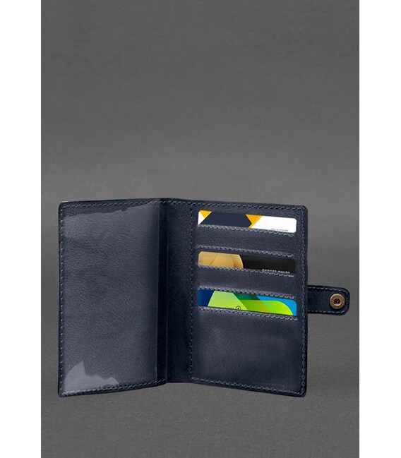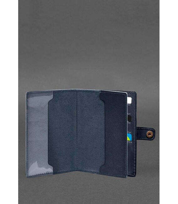 Кожаная обложка-портмоне для военного билета 15.0 темно-синяя