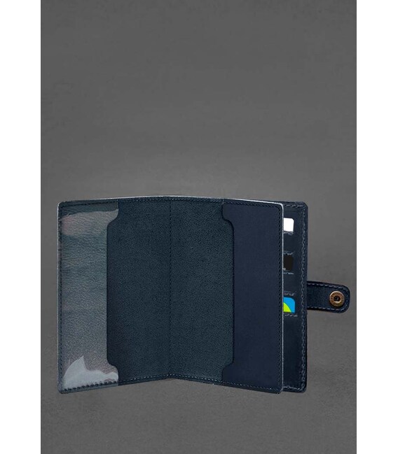 Кожаная обложка-портмоне для военного билета 15.0 темно-синяя Crazy Horse