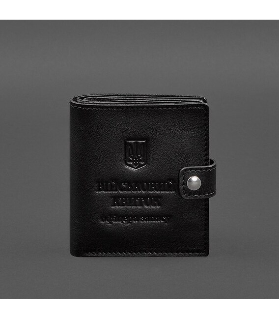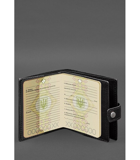 Кожаная обложка-портмоне на военный билет от бренда БланкНот специально разработана для бережного хранения вашего документа. Сшита из высококачественной натуральной кожи краст. Кожа краст достаточно крепкая и долговечная.Тиснение на лицевой стороне обложки-портмоне полностью дублирует оригинальный бланк документа. Вверху расположен герб Украины, посередине находится надпись «Військовий квиток офіцера запасу»Обратите внимание, что в Украине внедрено два бланка для военных билетов офицера запаса. Данная обложка подходит для более шорокого документа, который имеет приблизительный размер 9х11,5 см. Если у Вас документ более узкого формата, рекомендуем обратить внимание на другую модель портмоне-обложки.Внутри одно отделение для купюр, отдельный разворот для документа, 3 слота для пластиковых карточек, одно отделение с прозрачным окошком.Почему стоит купить Черную кожаную обложку-портмоне на военный билет (BN-OP-22-g) от BlankNote?Качественная натуральная кожа Четкое и хорошее тиснение Ручная работы Гарантия 3 годаНаши мастера могут изготовить обложку в любом другом цвете. Также изделие можно персонализировать.Обратите внимание на наши изделия с украинской символикой. Рекомендуем обложки для паспорта с гербом Украины.Гарантия на обложку - 3 года с момента покупки.Фурнитура и комплектация может быть изменена производителем