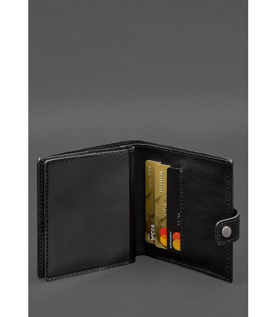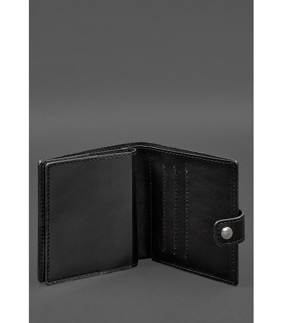 Кожаная обложка-портмоне для военного билета офицера запаса (широкий документ) Черная