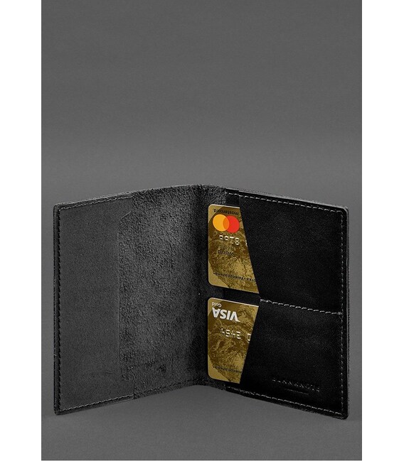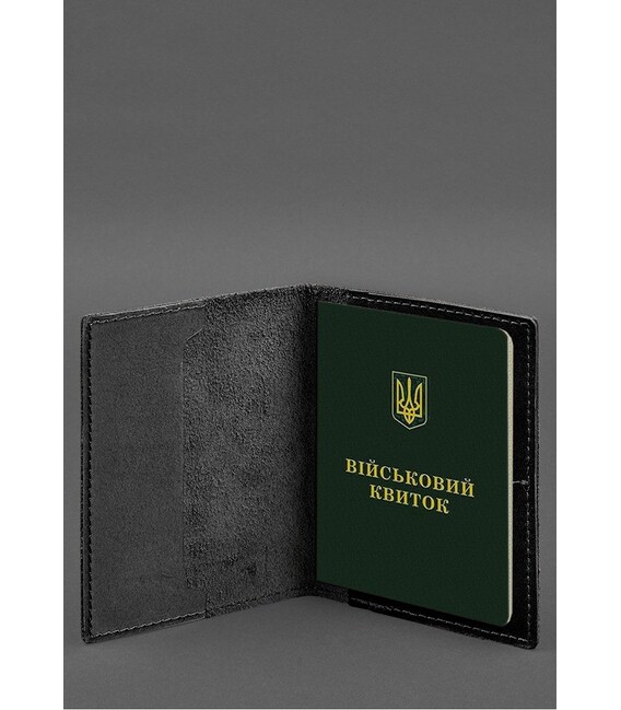 Кожаная обложка для военного билета с карманами 7.2 черный краст