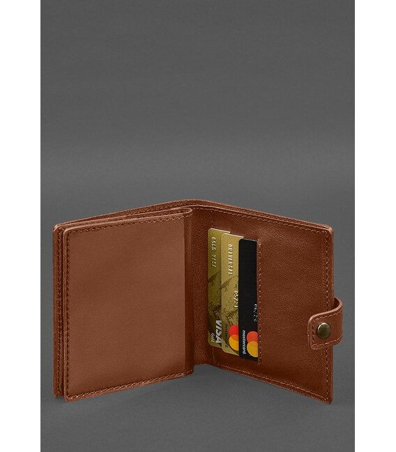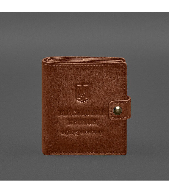 Кожаная обложка-портмоне для военного билета офицера запаса (широкий документ) Светло-коричневый