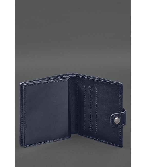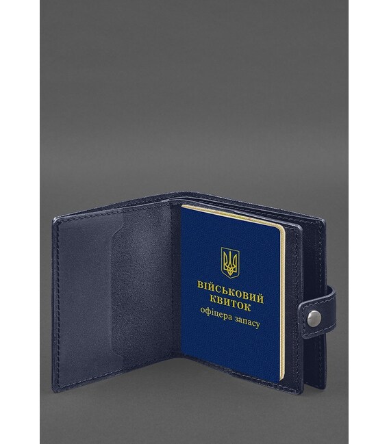 Кожаная обложка-портмоне для военного билета офицера запаса (широкий документ) Синий