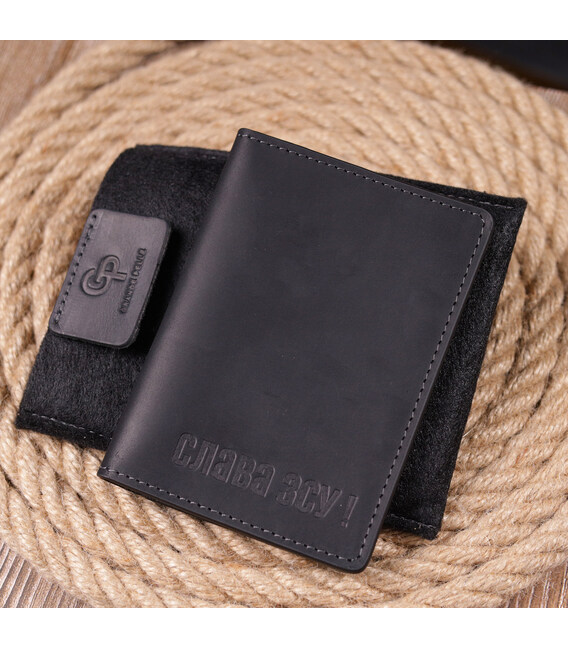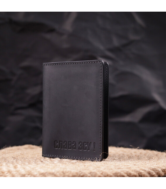 Описание Обложка из винтажной кожи на военный билет Слава ЗСУ GRANDE PELLE 16750 Черная