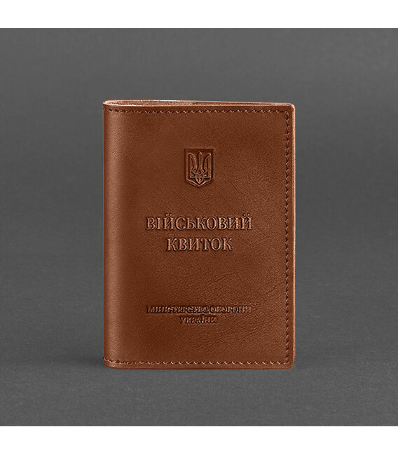 Кожаная обложка на военный билет от бренда БланкНот специально разработана для бережного хранения вашего документа. Сшита из высококачественной натуральной кожи краст. Кожа краст достаточно крепкая и долговечная.Тиснение на лицевой стороне обложки полностью дублирует оригинальный бланк документа. Вверху расположен герб Украины, посередине находится надпись «Військовий квиток» и в нижней части имеется тиснение "Міністерство оборони України"Формат обложки позволяет свободно разместить военно-учетный документ внутри.Наши мастера могут изготовить обложку в любом другом цвете. Также изделие можно персонализировать.Обратите внимание на наши изделия с украинской символикой. Рекомендуем обложки для паспорта с гербом Украины.Гарантия на обложку - 3 года с момента покупки.Фурнитура и комплектация может быть изменена производителем