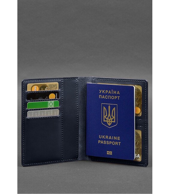 Кожаная обложка-органайзер для документов 6.1 темно-синий краст