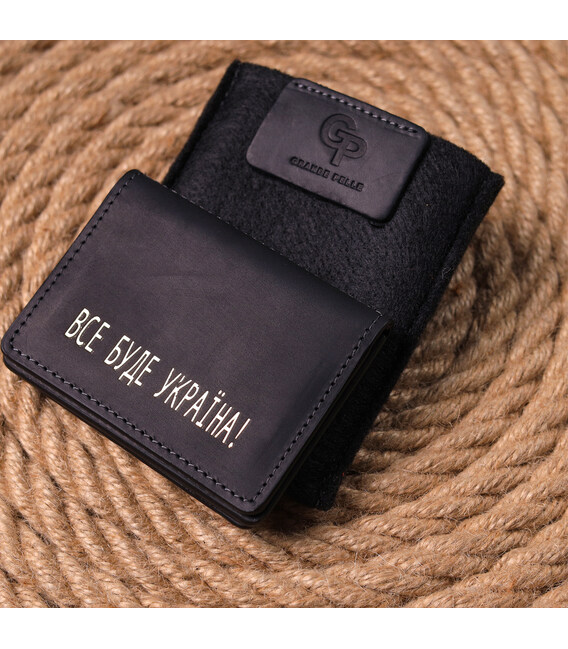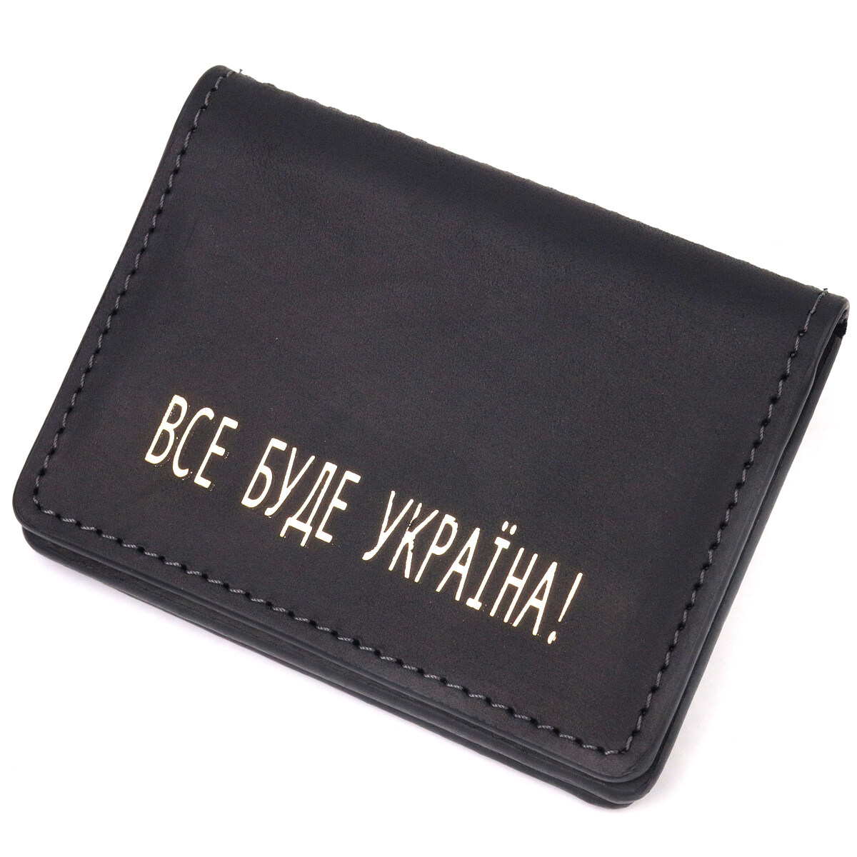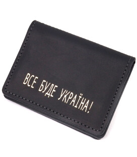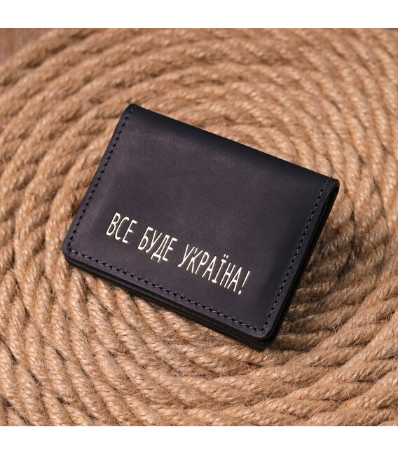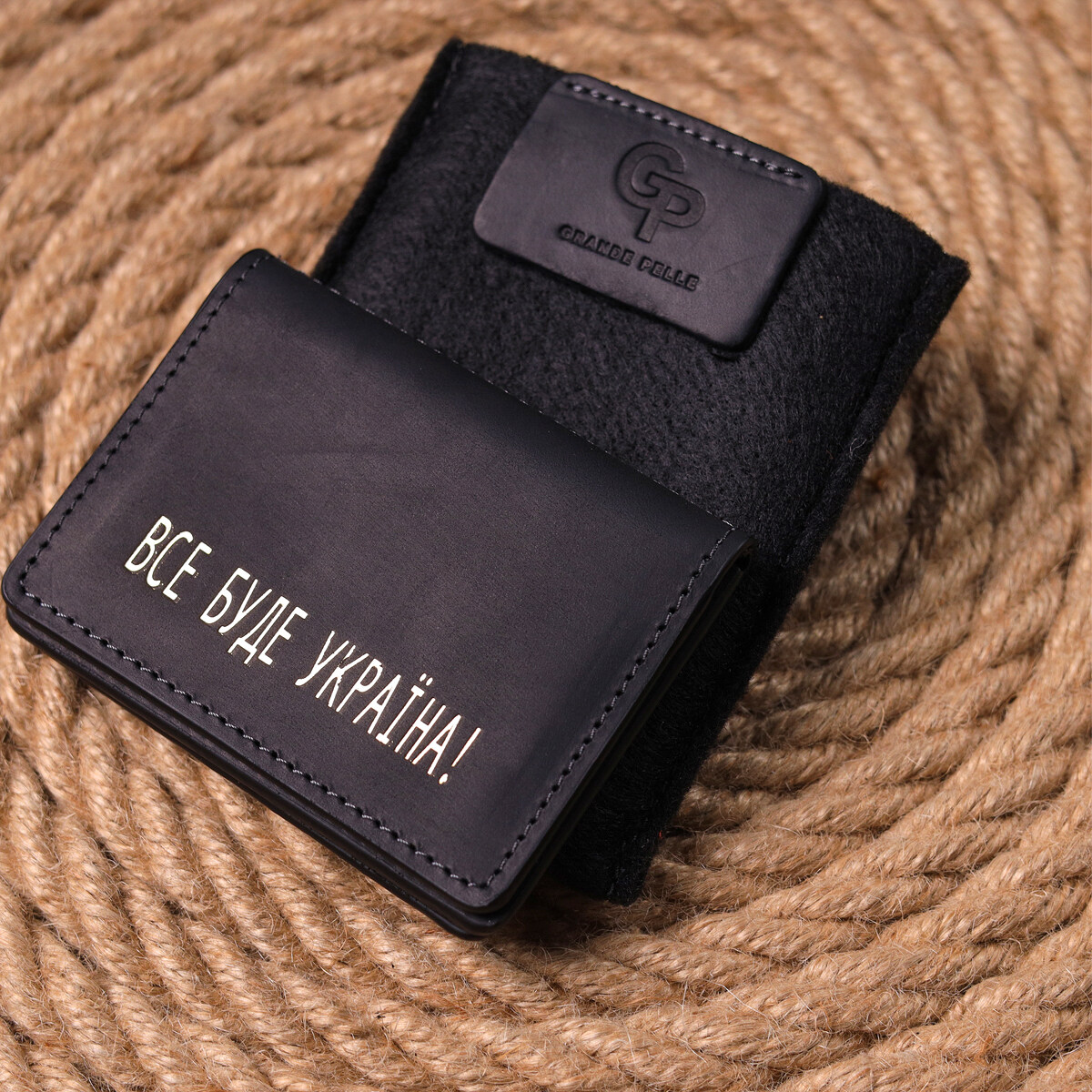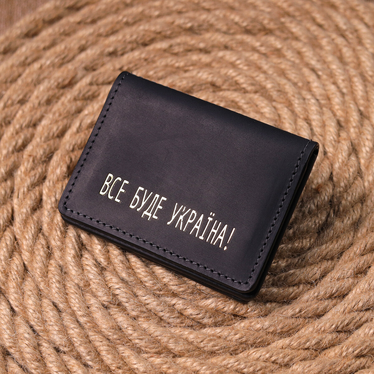 Патриотичная кожаная обложка на авто документы, с надписью “Все буде Україна” на лицевой стороне. Изделия из кожи всегда считались отличным подарком, не зависимо от пола и возраста. Изделие пошито с итальянской качественной кожи. По краям модель прошита черной строчкой в дизайн изделия. Изделие небольшого размера и с легкостью поместится в карман или маленькую сумку. В комплекте к изделию идет фирменный фетровый чехол.
