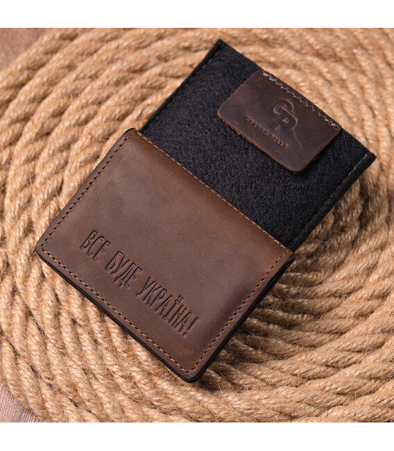 Патриотичная кожаная обложка на авто документы, с тиснением “Все буде Україна” на лицевой стороне. Изделия из кожи всегда считались отличным подарком, не зависимо от пола и возраста. Аксессуар пошито с итальянской качественной кожи. По краям модель прошита коричневой строчкой в дизайн изделия. Изделие небольшого размера и с легкостью поместится в карман или маленькую сумку. В комплекте к изделию идет фирменный фетровый чехол.