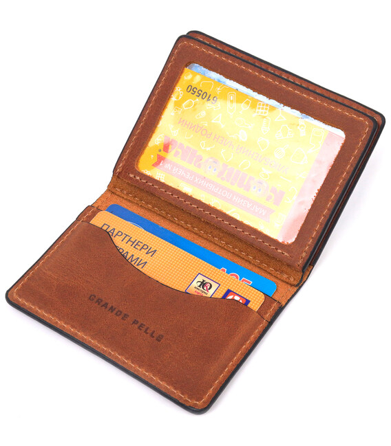 Описание Превосходная обложка на автодокументы в винтажной коже Украина GRANDE PELLE 16712 Светло-коричневая