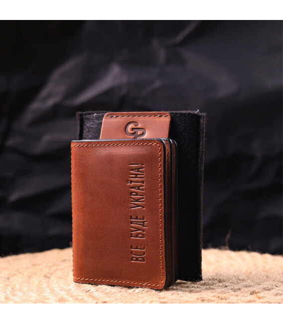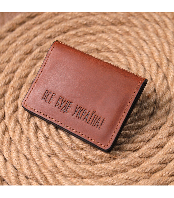 Практичная обложка для авто документов, с патриотической надписью “Все буде Україна”. Изделие пошито с итальянской качественной кожи.По краям модель прошита коричневой строчкой в дизайн изделия. Изделие небольшого размера и с легкостью поместится в карман или маленькую сумку. В комплекте к изделию идет фирменный фетровый чехол. Изделия из кожи всегда считались отличным подарком, не зависимо от пола и возраста.