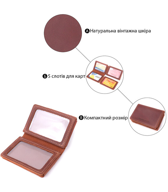 Описание Стильная обложка на автодокументы в винтажной коже GRANDE PELLE 22874 Светло-коричневая