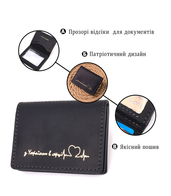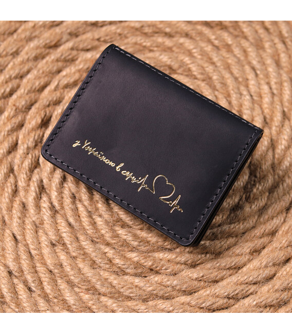 Патриотичная кожаная обложка на авто документы, с надписью “З Україною в серці” на лицевой стороне.Изделия из кожи всегда считались отличным подарком, не зависимо от пола и возраста. Изделие пошито с итальянской качественной кожи. По краям модель прошита черной строчкой в дизайн изделия. Изделие небольшого размера и с легкостью поместится в карман или маленькую сумку. В комплекте к изделию идет фирменный фетровый чехол.