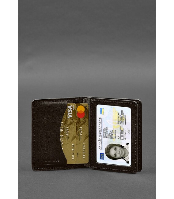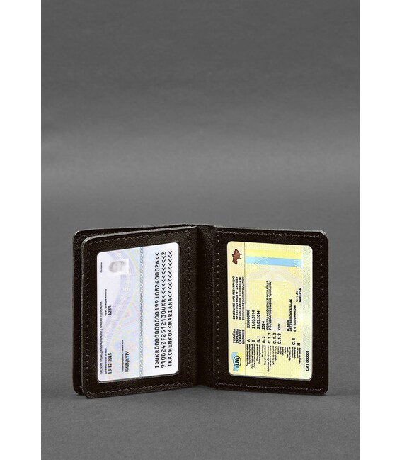 Кожаная обложка для водительского удостоверения, ID и пластиковых карт 2.0 коричневая (BN-KK-2-choko)Кожаная обложка для водительского удостоверения, ID и пластиковых карточек — это стильный и практичный аксессуар, созданный из высококачественной натуральной кожи.На внутренней стороне обложки размещены два слота для карточек пластиковые карты, которые вам нужно иметь под рукой. Эти слоты хорошо держат карточки, предотвращая их выпадение, тем самым обеспечивая их безопасность. Также обложка имеет 2 двухсторонних отделения с прозрачными окошками. Таким образом ID-карту или водительское удостоверение можно демонстрировать, не доставая с обложки.Почему стоит купить кожаную обложку для водительского удостоверения и ID?Кожаная обложка имеет высокую прочность и износостойкость, что обеспечивает долгий срок службы. Она хорошо защищает ваши документы от царапин, загрязнений и механических повреждений, сохраняя их в безупречном состоянии.Удобный дизайн обложки делает его идеальным аксессуаром для повседневного использования. Она имеет компактные размеры, которые легко поместятся в кармане, кошельке или сумке, позволяя вам всегда иметь свои документы под рукой. Кроме того, обложка обеспечивает удобный доступ к вашим картам и документам, что позволяет быстро найти необходимую информацию без усилий.Индивидуальное изготовление обложек для документов.Если вы хотите, чтобы ваша обложка была уникальной, вы можете заказать индивидуальное оформление. К примеру, тиснение или гравировка на поверхности обложки могут включать ваши инициалы, логотип, личную надпись или любой другой элемент, имеющий для вас личное значение. Также вы можете заказать эту обложку в разных цветах кожи, что позволяет подобрать вариант, соответствующий вашему стилю.Высокое качество материалов, внимательная ручная работа и подробное внимание к дизайну делают эту кожаную обложку элегантным и надежным аксессуаром, который подчеркнет ваш стиль и выразит вашу индивидуальность.Гарантия на обложку - 3 года с момента покупки.Фурнитура и комплектация может быть изменена производителем