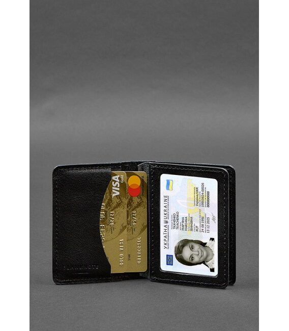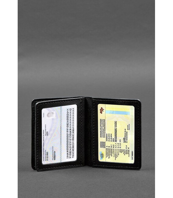 Кожаная обложка для водительского удостоверения, ID и пластиковых карт 2.0 черная (BN-KK-2-g)Кожаная обложка для водительского удостоверения, ID и пластиковых карточек — это стильный и практичный аксессуар, созданный из высококачественной натуральной кожи.На внутренней стороне обложки размещены два слота для карточек пластиковые карты, которые вам нужно иметь под рукой. Эти слоты хорошо держат карточки, предотвращая их выпадение, тем самым обеспечивая их безопасность. Также обложка имеет 2 двухсторонних отделения с прозрачными окошками. Таким образом ID-карту или водительское удостоверение можно демонстрировать, не доставая с обложки.Почему стоит купить кожаную обложку для водительского удостоверения и ID?Кожаная обложка имеет высокую прочность и износостойкость, что обеспечивает долгий срок службы. Она хорошо защищает ваши документы от царапин, загрязнений и механических повреждений, сохраняя их в безупречном состоянии.Удобный дизайн обложки делает его идеальным аксессуаром для повседневного использования. Она имеет компактные размеры, которые легко поместятся в кармане, кошельке или сумке, позволяя вам всегда иметь свои документы под рукой. Кроме того, обложка обеспечивает удобный доступ к вашим картам и документам, что позволяет быстро найти необходимую информацию без усилий.Индивидуальное изготовление обложек для документов.Если вы хотите, чтобы ваша обложка была уникальной, вы можете заказать индивидуальное оформление. К примеру, тиснение или гравировка на поверхности обложки могут включать ваши инициалы, логотип, личную надпись или любой другой элемент, имеющий для вас личное значение. Также вы можете заказать эту обложку в разных цветах кожи, что позволяет подобрать вариант, соответствующий вашему стилю.Высокое качество материалов, внимательная ручная работа и подробное внимание к дизайну делают эту кожаную обложку элегантным и надежным аксессуаром, который подчеркнет ваш стиль и выразит вашу индивидуальность.Гарантия на обложку - 3 года с момента покупки.Фурнитура и комплектация может быть изменена производителем