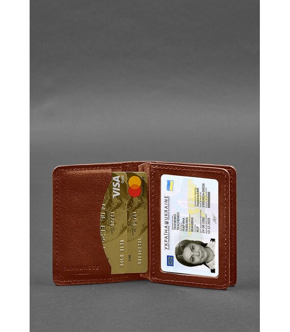 Кожаная обложка для водительского удостоверения, ID и пластиковых карт 2.0 светло-коричневая (BN-KK-2-k)Кожаная обложка для водительского удостоверения, ID и пластиковых карточек — это стильный и практичный аксессуар, созданный из высококачественной натуральной кожи.На внутренней стороне обложки размещены два слота для карточек пластиковые карты, которые вам нужно иметь под рукой. Эти слоты хорошо держат карточки, предотвращая их выпадение, тем самым обеспечивая их безопасность. Также обложка имеет 2 двухсторонних отделения с прозрачными окошками. Таким образом ID-карту или водительское удостоверение можно демонстрировать, не доставая с обложки.Почему стоит купить кожаную обложку для водительского удостоверения и ID?Кожаная обложка имеет высокую прочность и износостойкость, что обеспечивает долгий срок службы. Она хорошо защищает ваши документы от царапин, загрязнений и механических повреждений, сохраняя их в безупречном состоянии.Удобный дизайн обложки делает его идеальным аксессуаром для повседневного использования. Она имеет компактные размеры, которые легко поместятся в кармане, кошельке или сумке, позволяя вам всегда иметь свои документы под рукой. Кроме того, обложка обеспечивает удобный доступ к вашим картам и документам, что позволяет быстро найти необходимую информацию без усилий.Индивидуальное изготовление обложек для документов.Если вы хотите, чтобы ваша обложка была уникальной, вы можете заказать индивидуальное оформление. К примеру, тиснение или гравировка на поверхности обложки могут включать ваши инициалы, логотип, личную надпись или любой другой элемент, имеющий для вас личное значение. Также вы можете заказать эту обложку в разных цветах кожи, что позволяет подобрать вариант, соответствующий вашему стилю.Высокое качество материалов, внимательная ручная работа и подробное внимание к дизайну делают эту кожаную обложку элегантным и надежным аксессуаром, который подчеркнет ваш стиль и выразит вашу индивидуальность.Гарантия на обложку - 3 года с момента покупки.Фурнитура и комплектация может быть изменена производителем