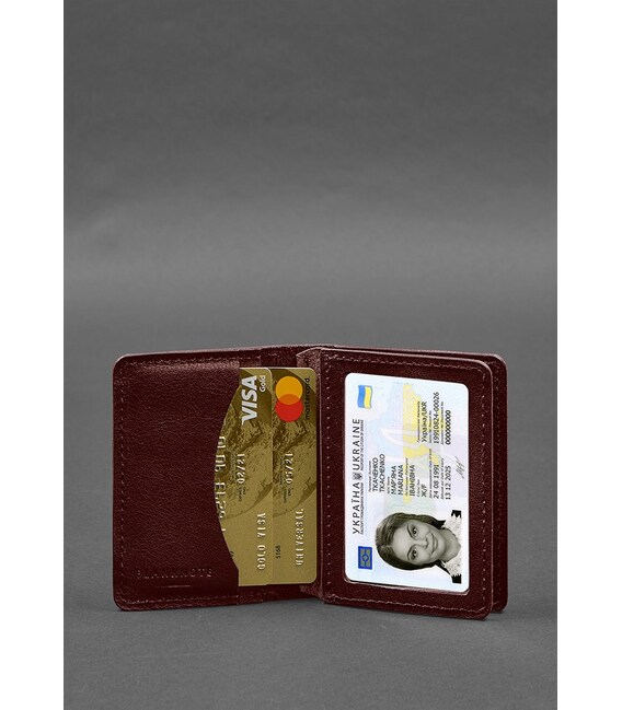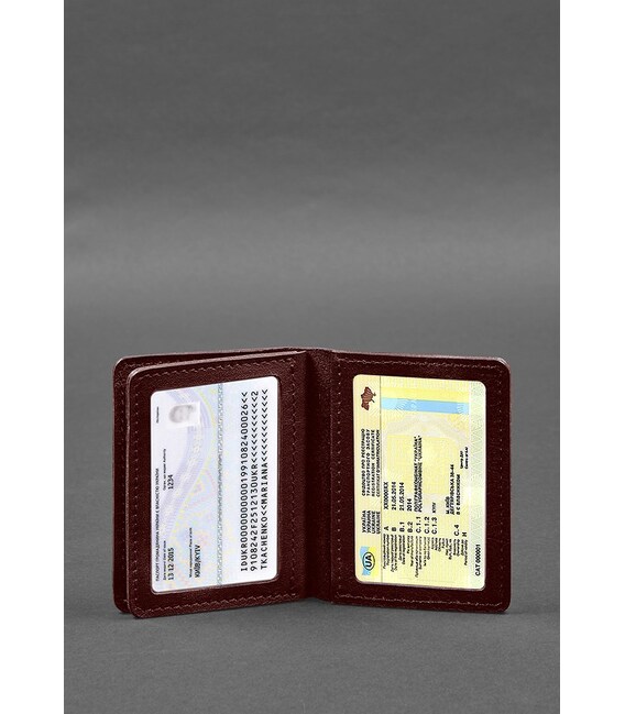 Кожаная обложка для водительского удостоверения, ID и пластиковых карт 2.0 бордовая (BN-KK-2-vin)Кожаная обложка для водительского удостоверения, ID и пластиковых карточек — это стильный и практичный аксессуар, созданный из высококачественной натуральной кожи.На внутренней стороне обложки размещены два слота для карточек пластиковые карты, которые вам нужно иметь под рукой. Эти слоты хорошо держат карточки, предотвращая их выпадение, тем самым обеспечивая их безопасность. Также обложка имеет 2 двухсторонних отделения с прозрачными окошками. Таким образом ID-карту или водительское удостоверение можно демонстрировать, не доставая с обложки.Почему стоит купить кожаную обложку для водительского удостоверения и ID?Кожаная обложка имеет высокую прочность и износостойкость, что обеспечивает долгий срок службы. Она хорошо защищает ваши документы от царапин, загрязнений и механических повреждений, сохраняя их в безупречном состоянии.Удобный дизайн обложки делает его идеальным аксессуаром для повседневного использования. Она имеет компактные размеры, которые легко поместятся в кармане, кошельке или сумке, позволяя вам всегда иметь свои документы под рукой. Кроме того, обложка обеспечивает удобный доступ к вашим картам и документам, что позволяет быстро найти необходимую информацию без усилий.Индивидуальное изготовление обложек для документов.Если вы хотите, чтобы ваша обложка была уникальной, вы можете заказать индивидуальное оформление. К примеру, тиснение или гравировка на поверхности обложки могут включать ваши инициалы, логотип, личную надпись или любой другой элемент, имеющий для вас личное значение. Также вы можете заказать эту обложку в разных цветах кожи, что позволяет подобрать вариант, соответствующий вашему стилю.Высокое качество материалов, внимательная ручная работа и подробное внимание к дизайну делают эту кожаную обложку элегантным и надежным аксессуаром, который подчеркнет ваш стиль и выразит вашу индивидуальность.Гарантия на обложку - 3 года с момента покупки.Фурнитура и комплектация может быть изменена производителем