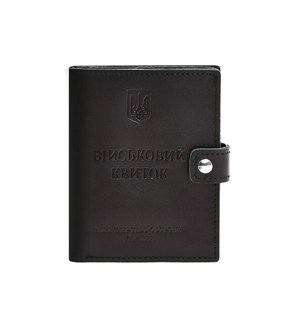 Кожаная обложка-портмоне для военного билета с карманом для жетона 15.1 Черная