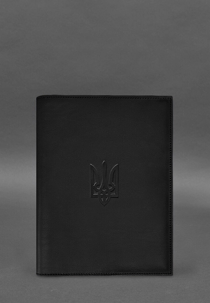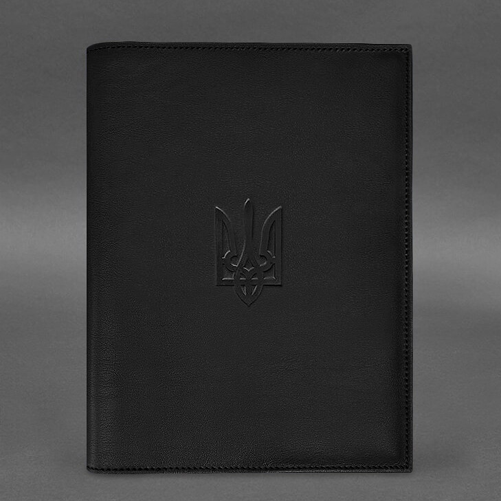 Кожаная обложка для нотариального реестра с Трезубцем черная