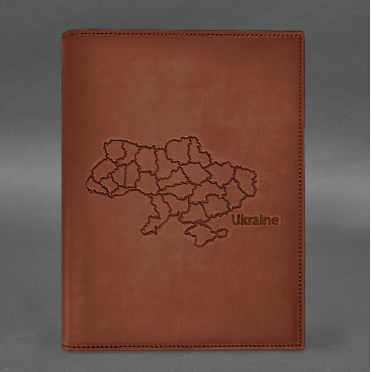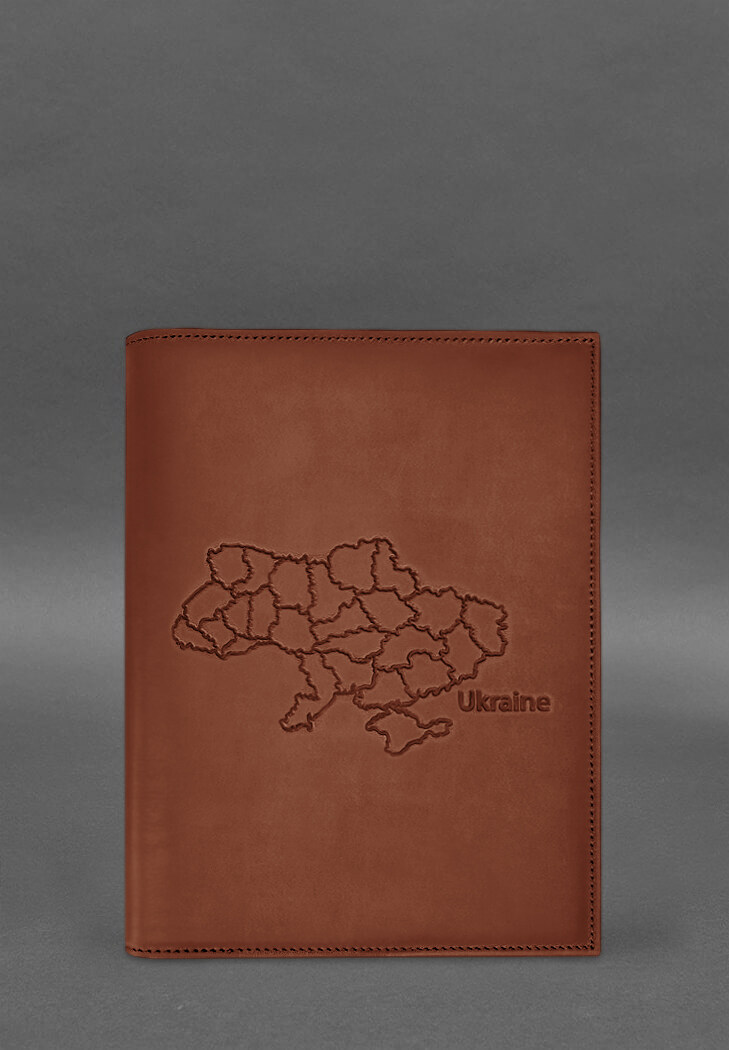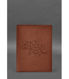 Кожаная обложка для нотариального реестра с картой Украины светло-коричневая Crazy Horse