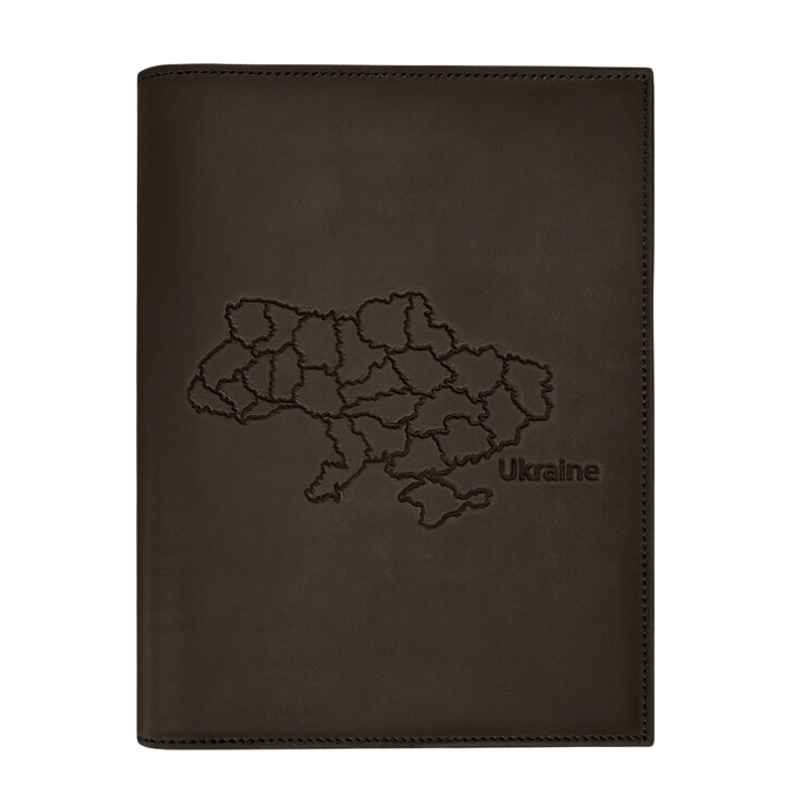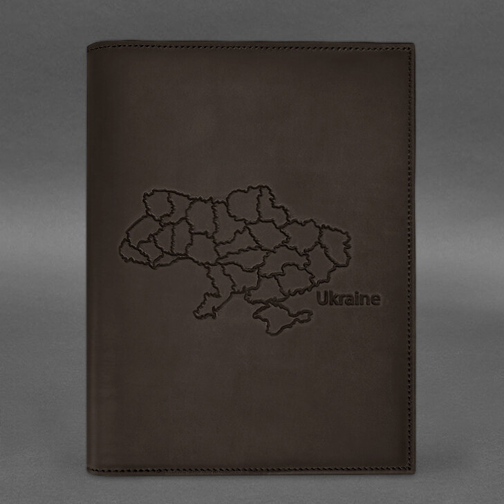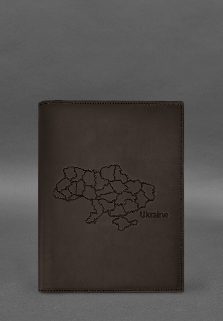 Кожаная обложка для нотариального реестра с картой Украины темно-коричневая Crazy Horse