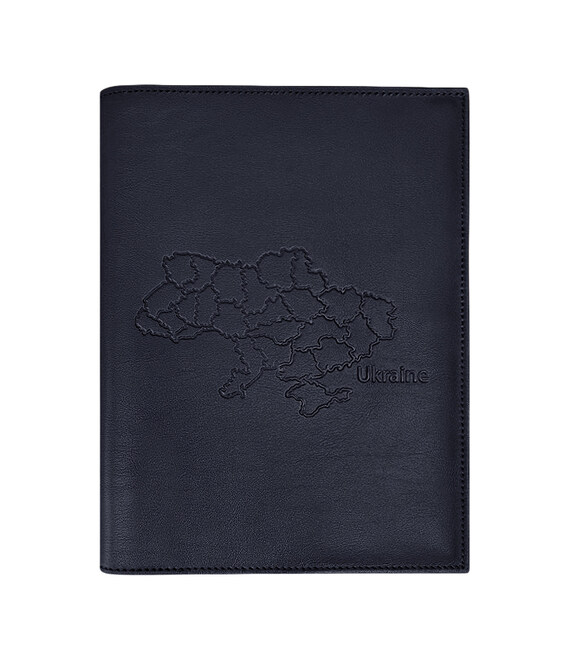 Описание Кожаная обложка для нотариального реестра с картой Украины темно-синяя