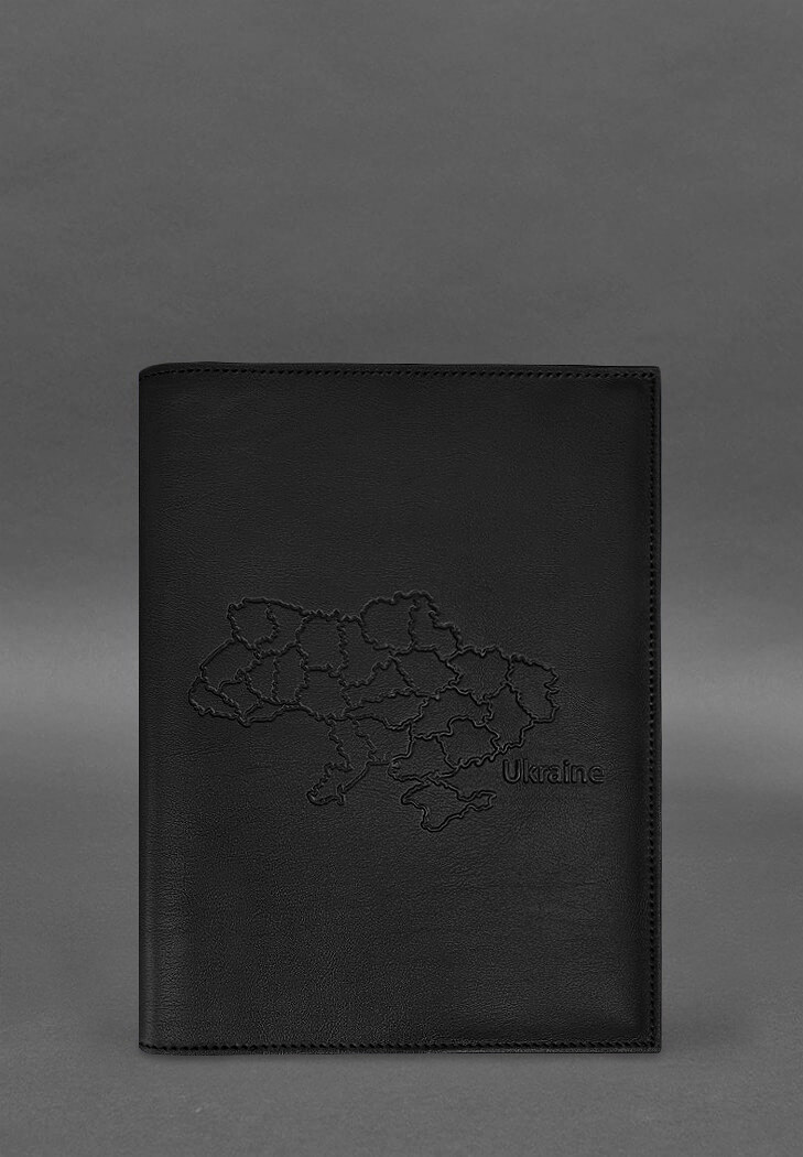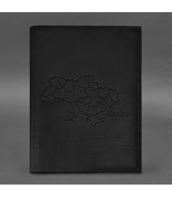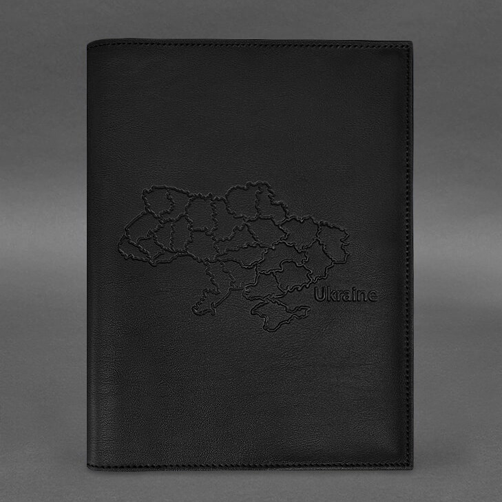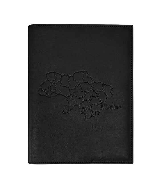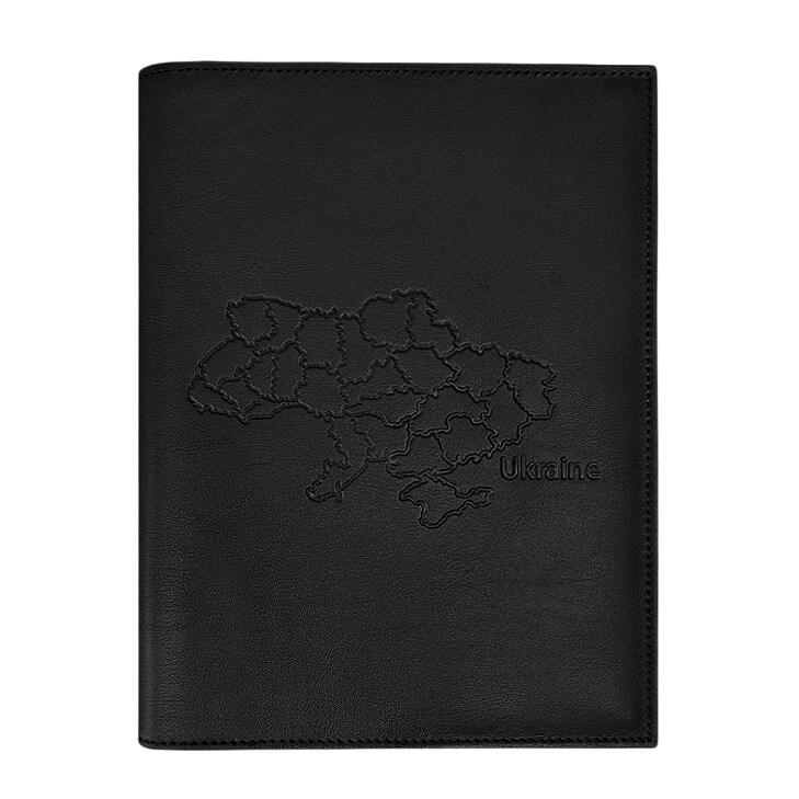 Кожаная обложка для нотариального реестра с картой Украины черная