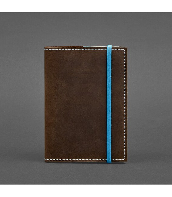 Описание Кожаная обложка для паспорта 1.0 темно-коричневый Crazy Horse с бирюзовым