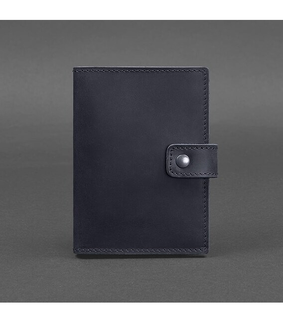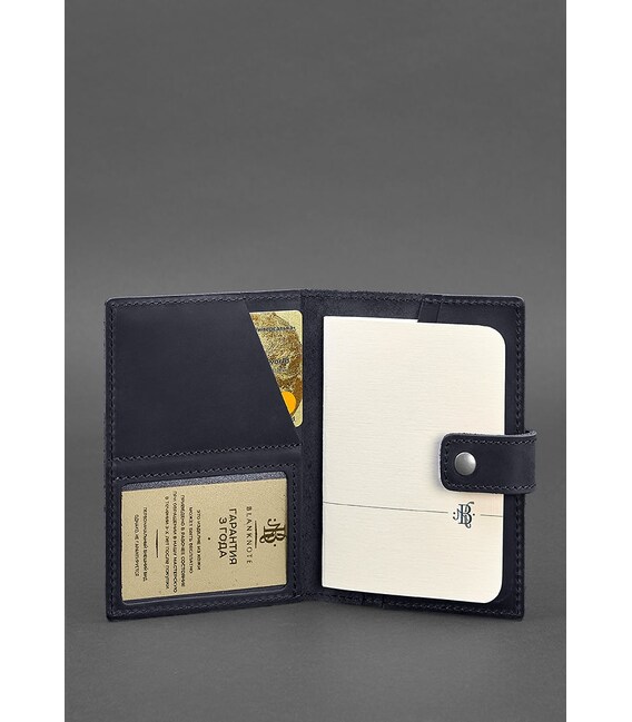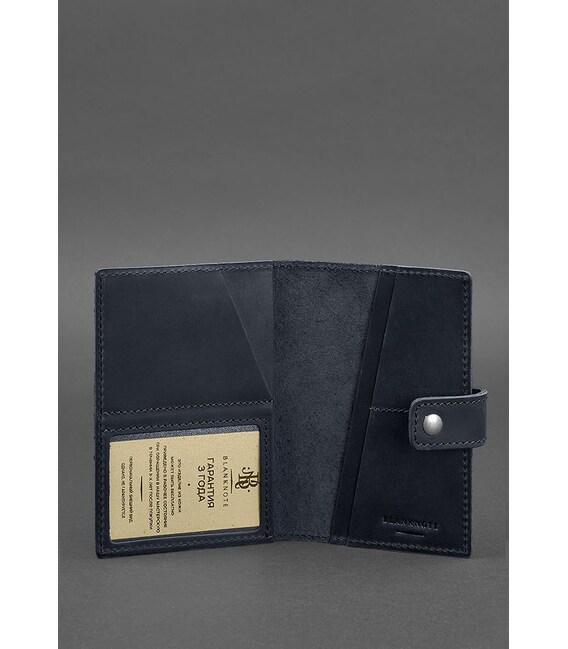 Кожаная обложка для паспорта 5.0 (с окошком) темно-синяя Crazy Horse