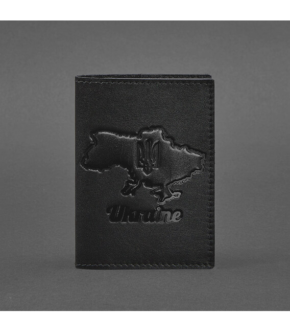 Кожаная обложка для паспорта с картой Украины черный краст