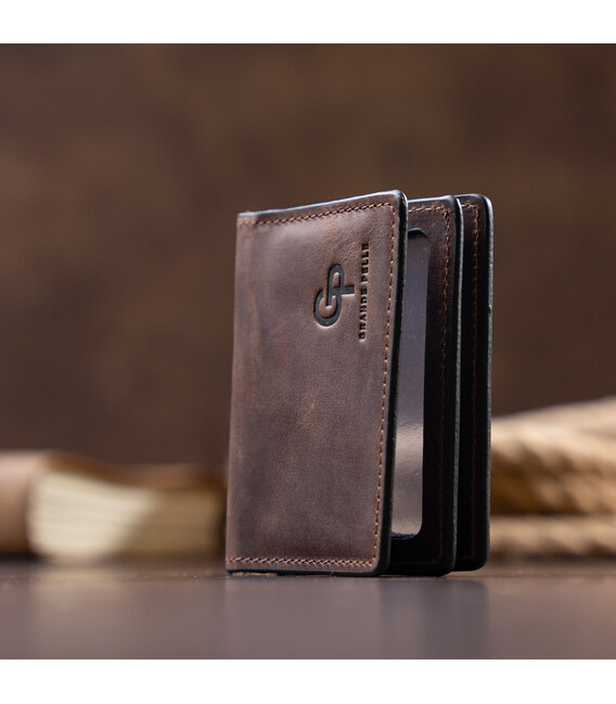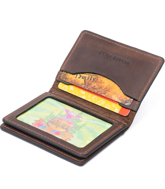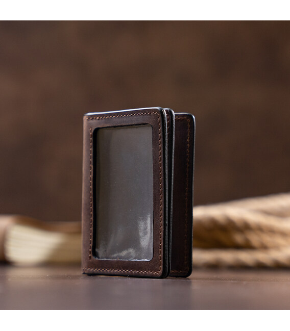 Стильная визитница-обложка из натуральной винтажной кожи классического и модного коричневого цвета. В аксессуар легко поместится рабочее удостоверение в виде карточки, пропуск, ид-карта, права нового образца. В производстве обложки используется натуральная итальянская кожа.