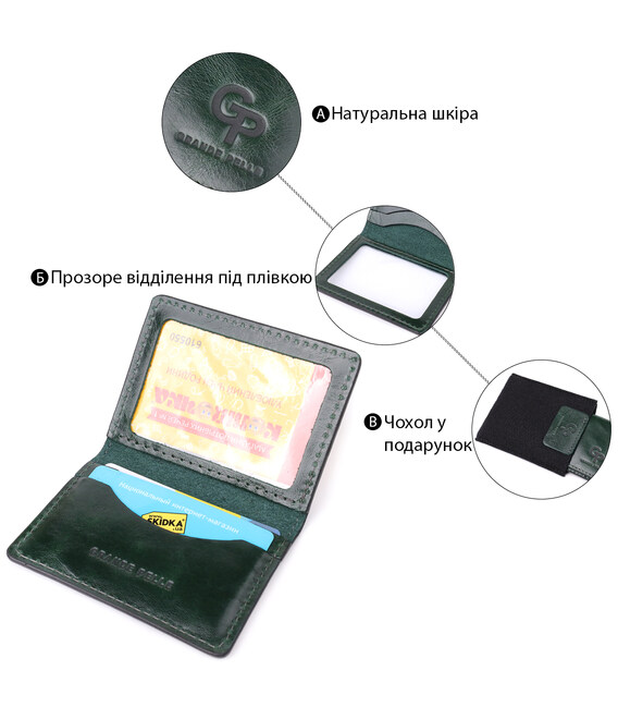 Описание Обложка на документы из натуральной гладкой кожи GRANDE PELLE 22942 Зеленый