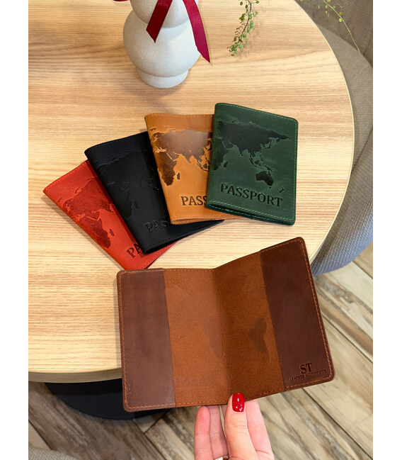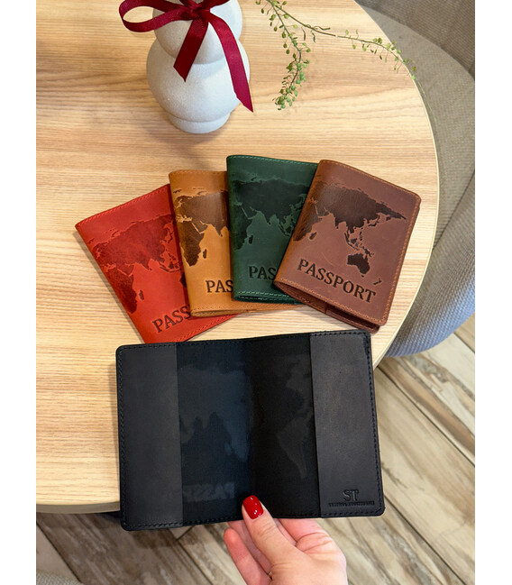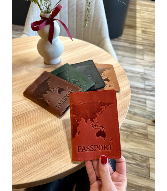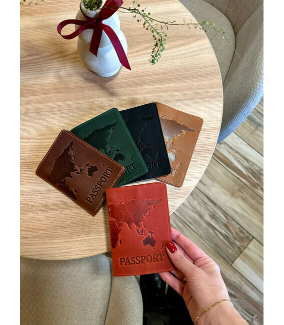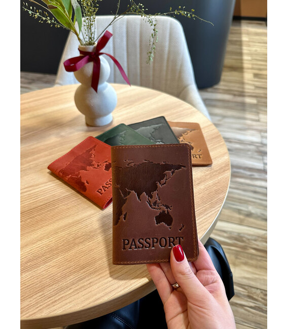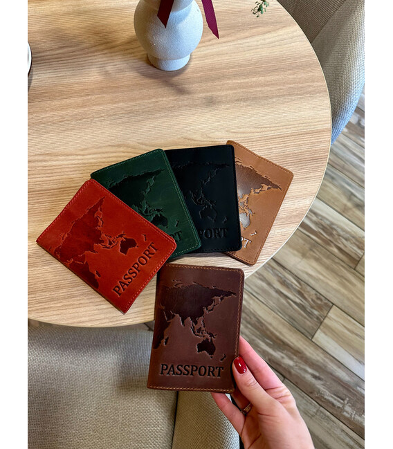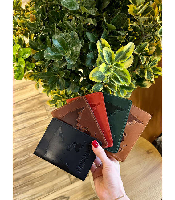 Кожаная обложка для паспорта с картой и надписью Ukraine