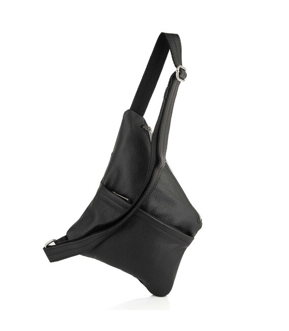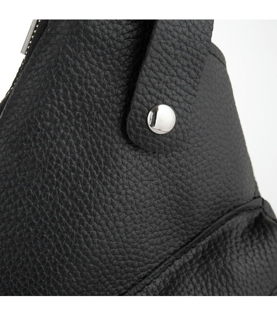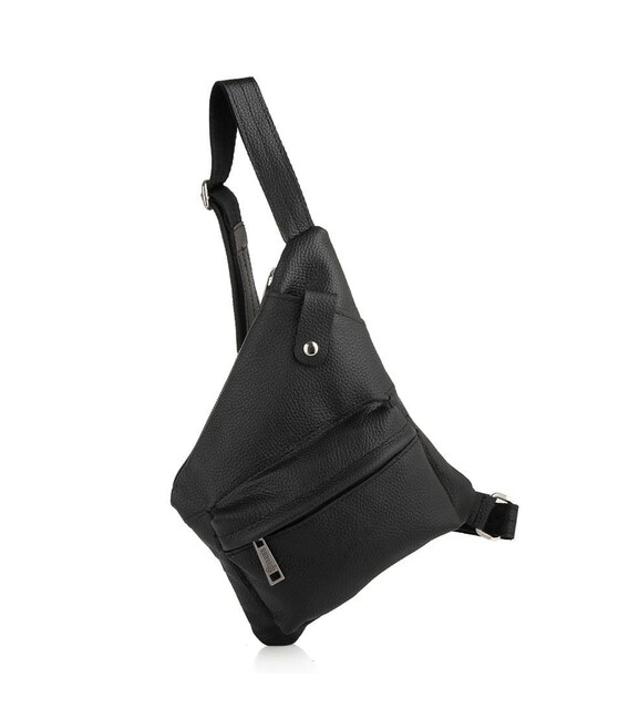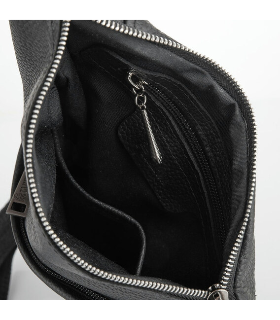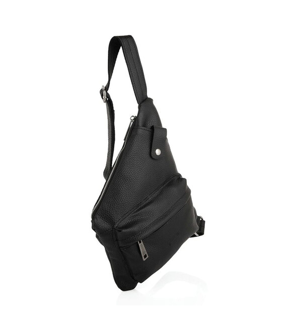 Чоловіча сумка слінг, рюкзак через плече FA-6501-4lx, бренд TARWA у чорній шкірі флотар із сріблястими блискавками. Аксесуар незвичайної форми, і максимальною функціональністю при носінні. Буде корисна у поїздках та подорожах. Може носитися потай під одягом. Рюкзак слінг - зручно та практично.