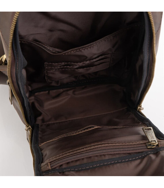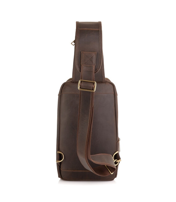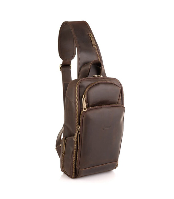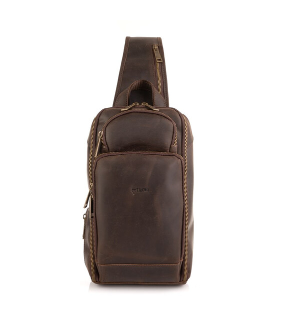 Шкіряний рюкзак на одне плече, рюкзак-слінг TARWA RC-0910-4lx. Стильний аксесуар виготовлений з натуральної шкіри Crazy horse, в коричневому кольорі. Невеликий за розміром рюкзак призначений для повсякденного використання.