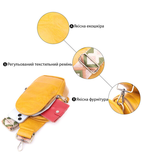 Описание Удобная женская слинг сумка через плечо из экокожи Vintage sale_15118 Желтый